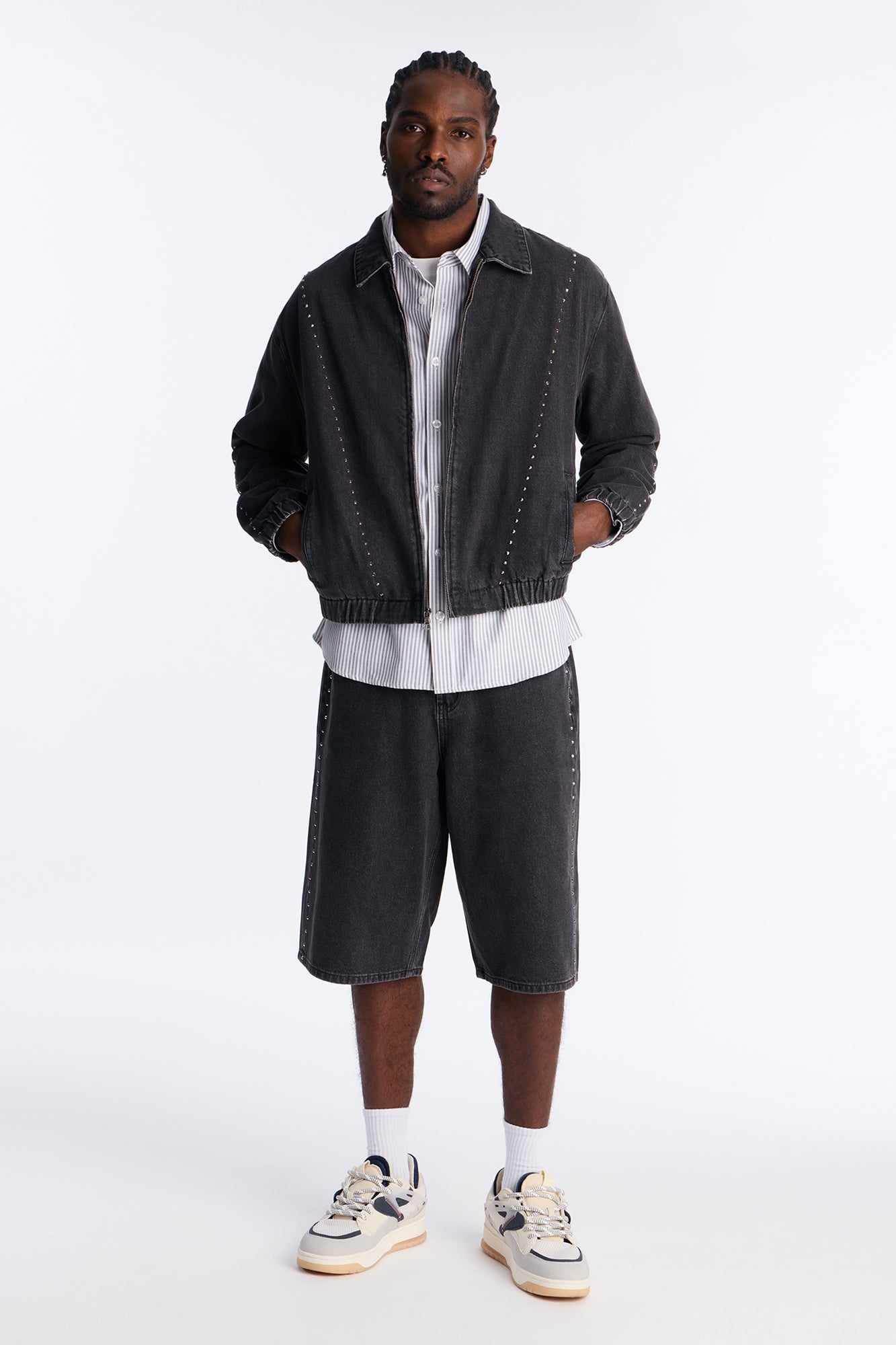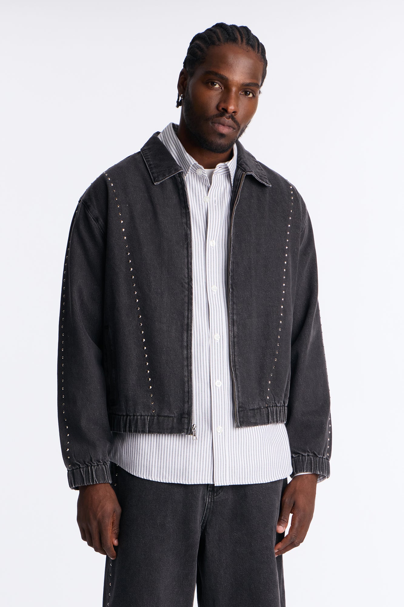 Elevate your casual wardrobe with the Lined Up Jewels Denim Jacket in Black Wash. This stylish women’s denim jacket features a classic silhouette with unique jewel accents lined up along the front, adding a touch of sparkle and edge to everyday looks. Crafted from premium denim with a black wash finish for a vintage-inspired vibe, it offers a comfortable mid-weight feel perfect for layering in transitional weather.