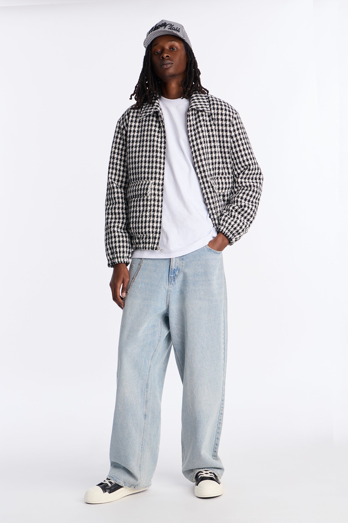 Elevate your wardrobe with the Ludlow Checkered Tweed Padded Bomber Jacket in Black/White. Crafted from premium tweed fabric, this jacket features a classic checkered pattern that blends timeless style with modern comfort. The padded design provides lightweight insulation, making it perfect for transitional weather, from crisp fall days to mild winter evenings.